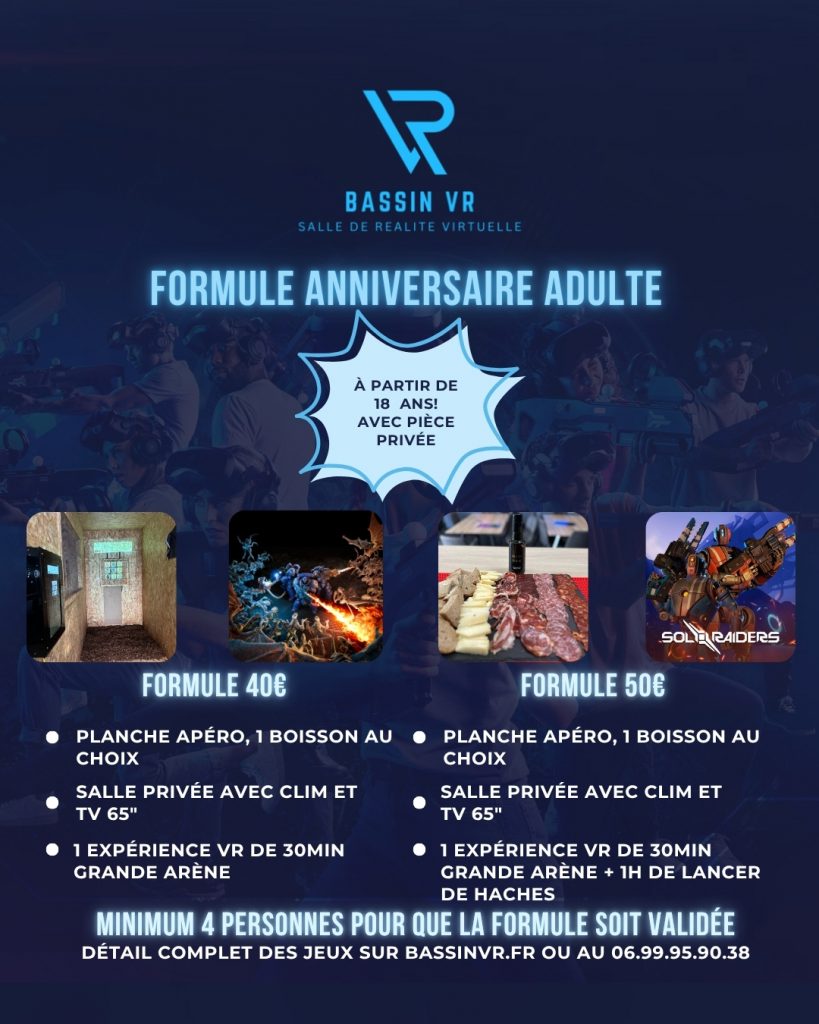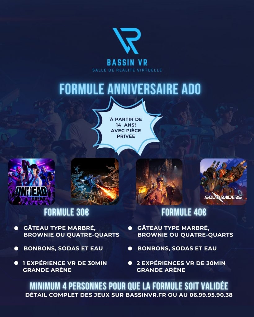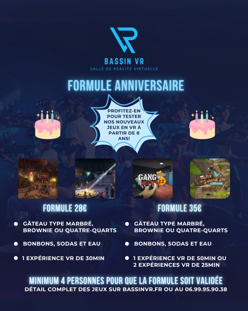 Offrez à votre enfant un anniversaire exceptionnel sur le Bassin. Contactez Bassin VR dès maintenant pour organiser une fête originale, ludique et réussie.